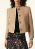 Ba&ShA refined tweed jacket in mid-weight fabric with a classic crew neck and gold-tone button placket. Patch breast pockets add understated detail to this timeless wardrobe essential.