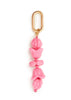 A delicate floral purse fob crafted from resin and 14k vintage gold-plated brass. The clip-on design adds a refined botanical accent to any bag or accessory for understated elegance.