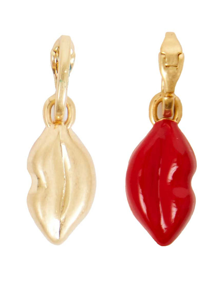 Clare V.A playful lips charm in vibrant poppy enamel and 14k gold-plated brass. The carabiner fastening attaches effortlessly to bags or accessories for a subtle pop of personality and refined charm.
