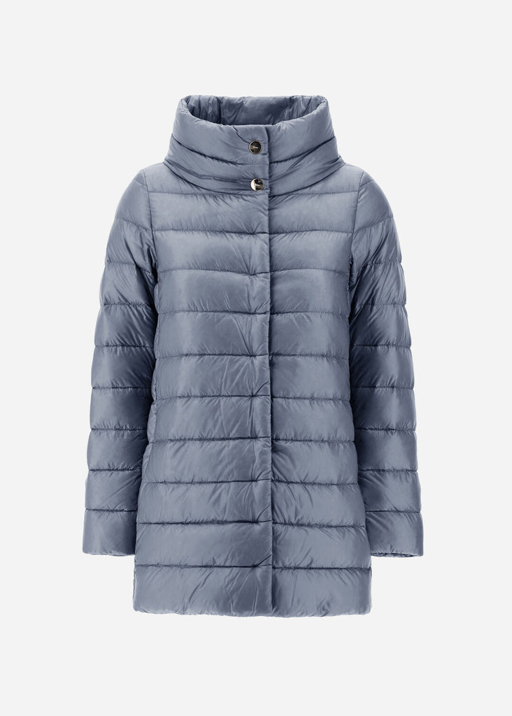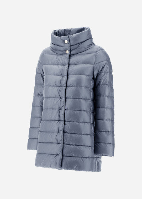 The Herno Amelia Down Coat is a brand icon, blending luxurious style with functional design. Its signature A-line silhouette is crafted from exclusive ultralight 20-denier nylon, which is water-resistant and filled with a lightweight yet warm down padding.