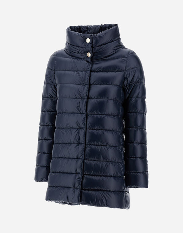 The injected padding in ultra-fine goose down and the silky-effect nylon make the garment extremely lightweight and delicate to the touch.