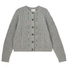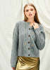 Jumper 1234Jumper 1234 cashmere and wool cardigan. Heavier weight cashmere and wool mid grey crew neck Aran cardigan adorned with a wonderful mix of jewels and beaded flowers. Slightly oversize fit and also available in aqua and stone.