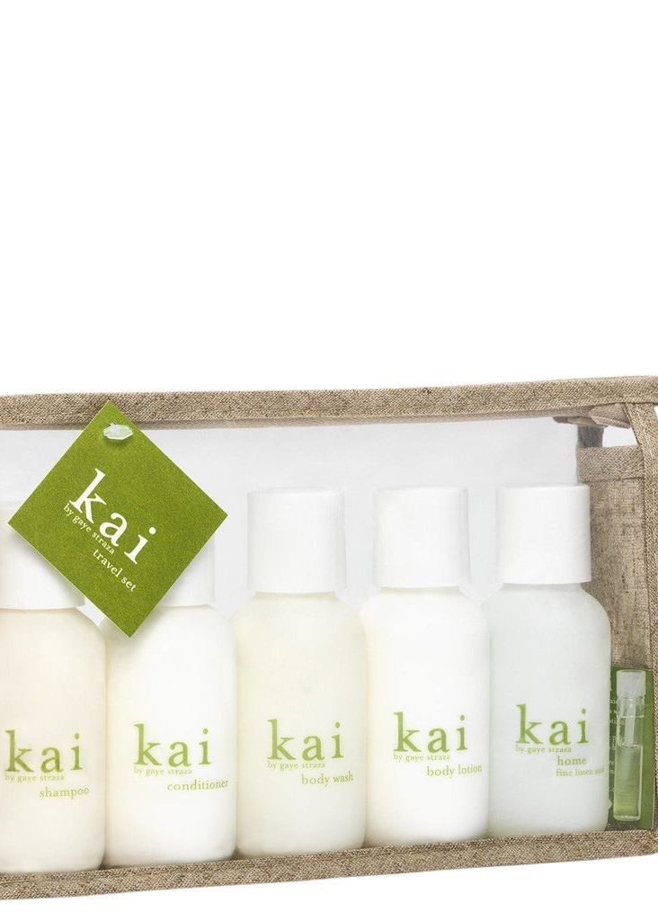 Discover Kai's signature gardenia fragrance in this curated travel collection. The natural hemp bag contains five essentials—shampoo, conditioner, body wash, lotion, bath bubbles, and perfume oil—all in TSA-approved sizes. Paraben and sulfate-free, cruelty-free, vegan, and made in the USA.