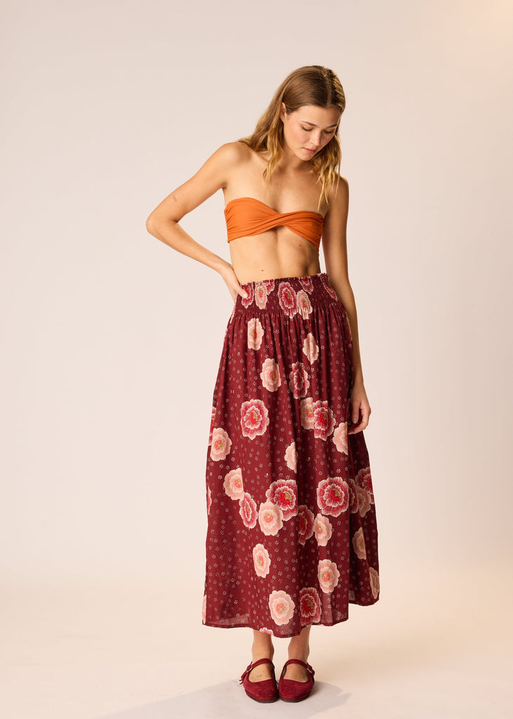 This flowy skirt is crafted from soft, lightweight cotton and features a flattering smocked waistband and a charming floral print.