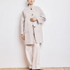 The Vadim Coat features a full, cape-inspired mid-length for a modern yet casual silhouette. Made from warm, lightweight double-faced wool, it offers ideal comfort for mid-season and winter alike. Its high collar and dropped armholes give it a structured look while retaining an assertive oversize spirit. This piece is made from a double-sided wool blend fabric, offering a soft and slightly fluffy feel. Thanks to the absence of lining, it combines simplicity and sophistication while highlighting precise finishes. With a weight of 520g/m, this fabric guarantees superior quality and an impeccable fall. 80% Wool - 20% Polyamide.