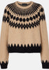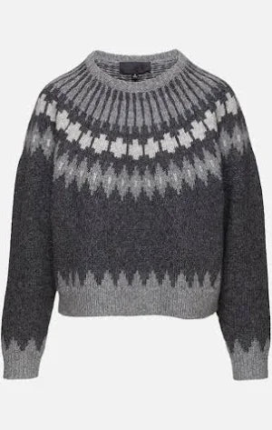Nili LotanChunky weight boxy fair isle sweater. Raglan arm hole and sleeve. Rib start at hem and sleeve. Single layer rib at neck.