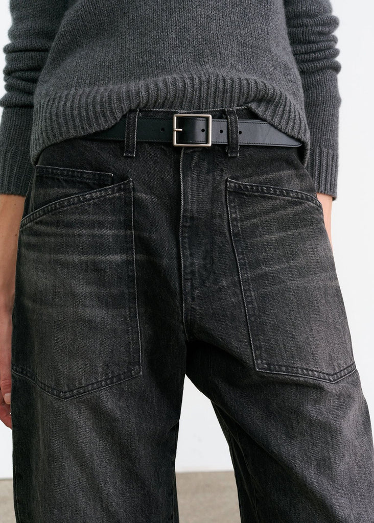 Nili Lotan's 'Shon' jeans are an effortlessly cool take on the classic five-pocket construction. Made from whiskered black denim, they're designed with slouchy barrel legs that taper toward the ankles to create a curved silhouette.