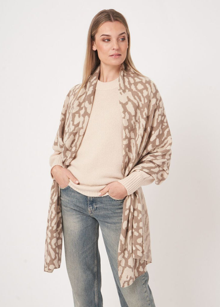 RepeatElegant organic cashmere scarf in a timeless leopard print with a refined ribbed hem. Lightweight and finely knitted for effortless sophistication.