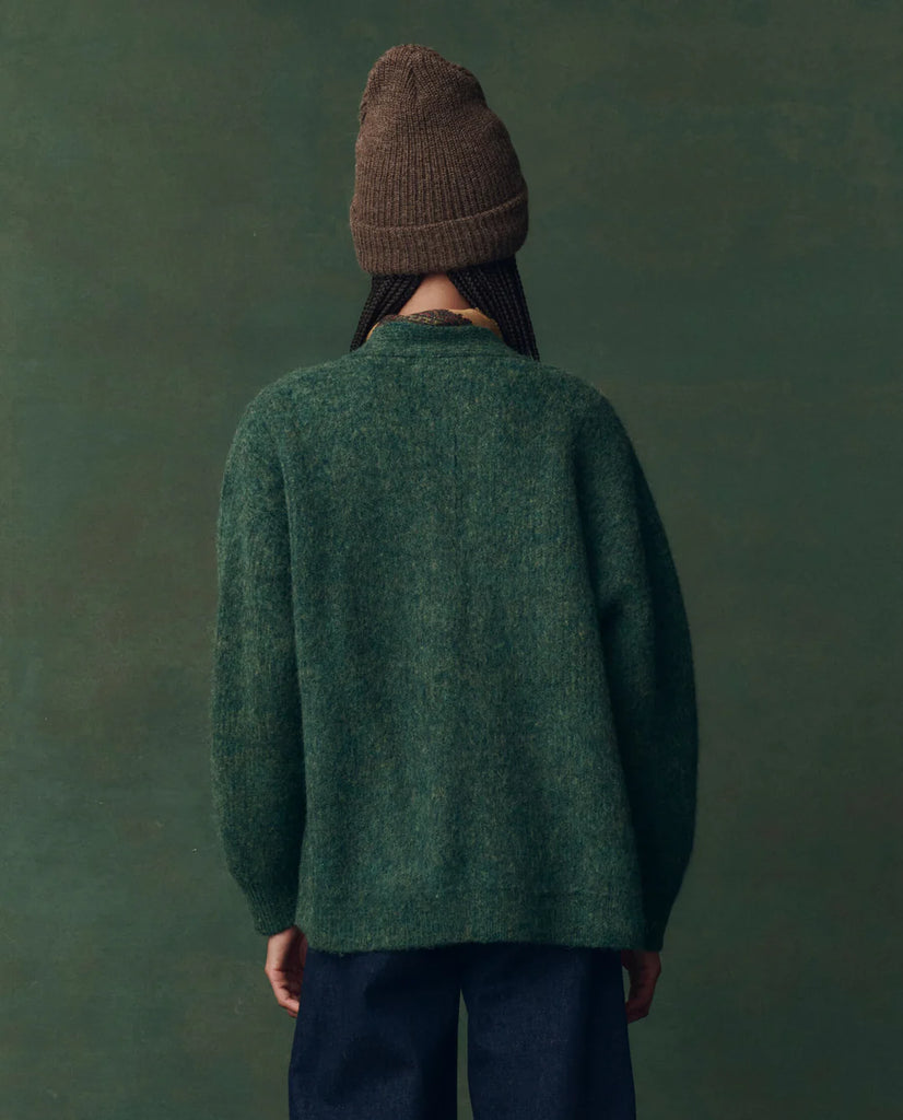 Knit from a baby alpaca and wool blend, The Brushed Melange Cardigan has a soft, brushed texture and a super boxy silhouette. Designed with a dropped shoulder and finished with dark horn buttons, it’s relaxed in shape with quiet structure at the edges.