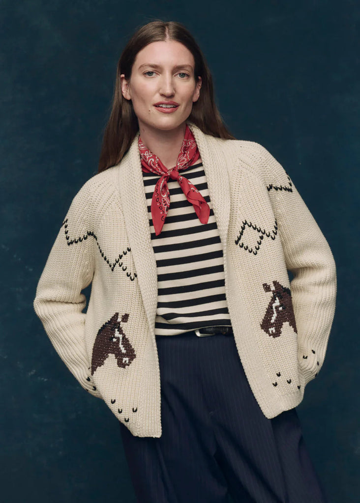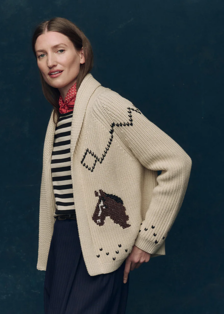 The GreatInspired by a 1960s kids' sweater, The Horse Lodge features hand-embroidered horses on our best-selling Lodge Cardigan. Spun from a soft cotton blend yarn, this cozy piece beautifully blends western nostalgia with everyday comfort.