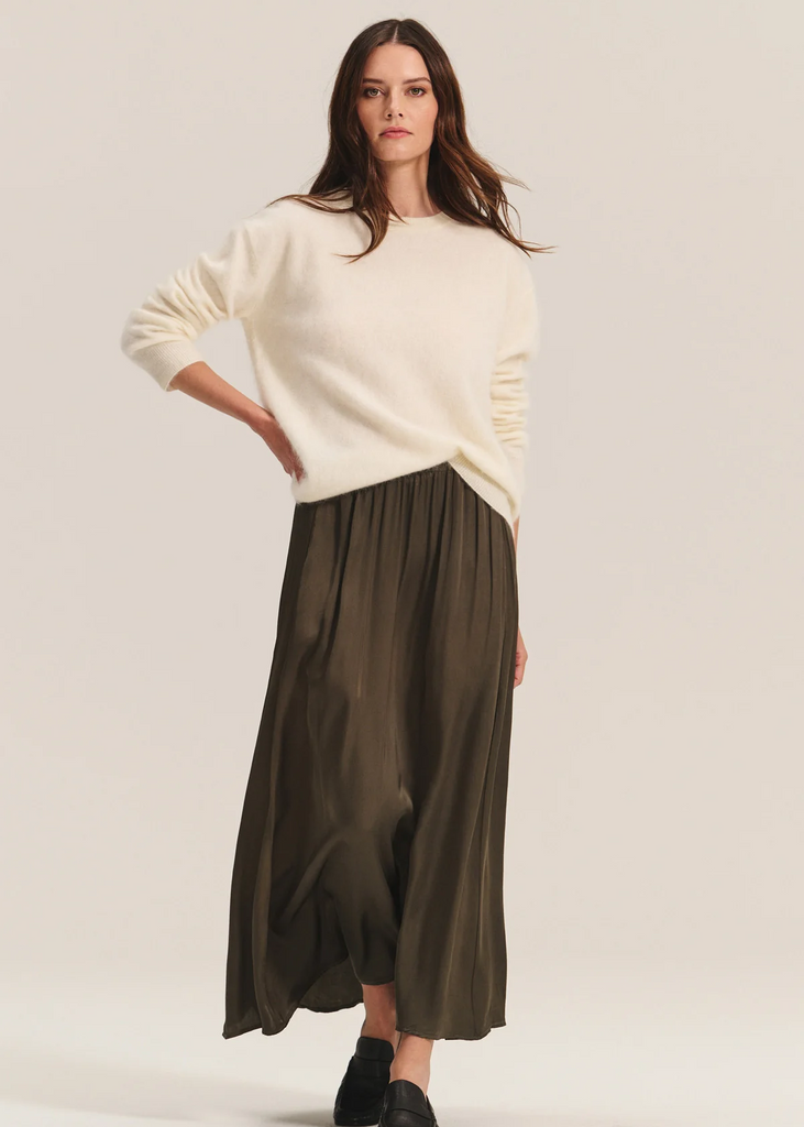 VelvetLight and fluid in movement, this satin skirt features an easy pull-on design with an elastic waistband for a comfortable fit. Its delicate drape and soft sheen bring an elegant touch to any look, making it a versatile piece for both casual days and refined occasions.