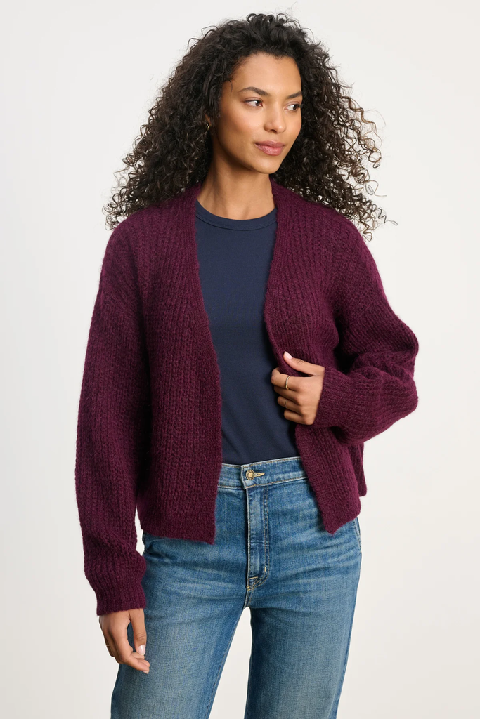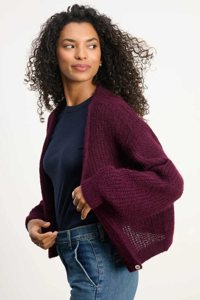 VelvetCrafted from a soft, textured alpaca blend, this cardigan features a versatile design with three buttons at the hem—wear it open or fastened for a wrap-style silhouette. Ideal for layering through changing seasons, it’s a cozy essential with a modern, adaptable touch.