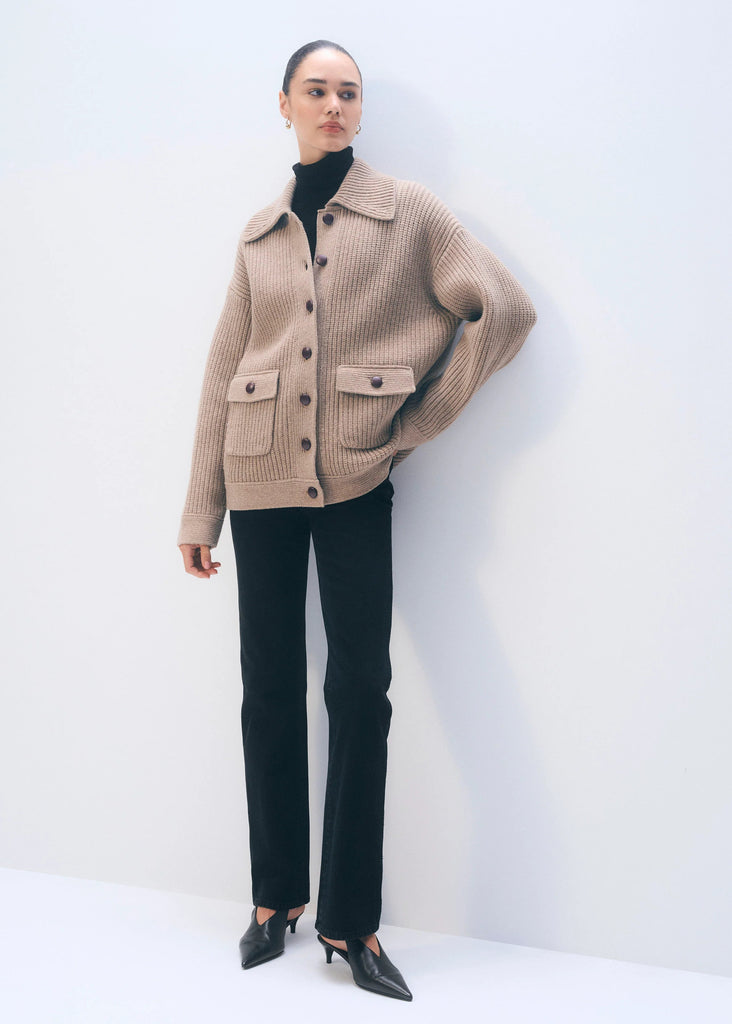 White and WarrenA luxury jacket spun from 100% Scottish merino wool and softened with our proprietary wash. Designed in a fisherman rib with structured details and leather-coated buttons, it balances durability with refinement.