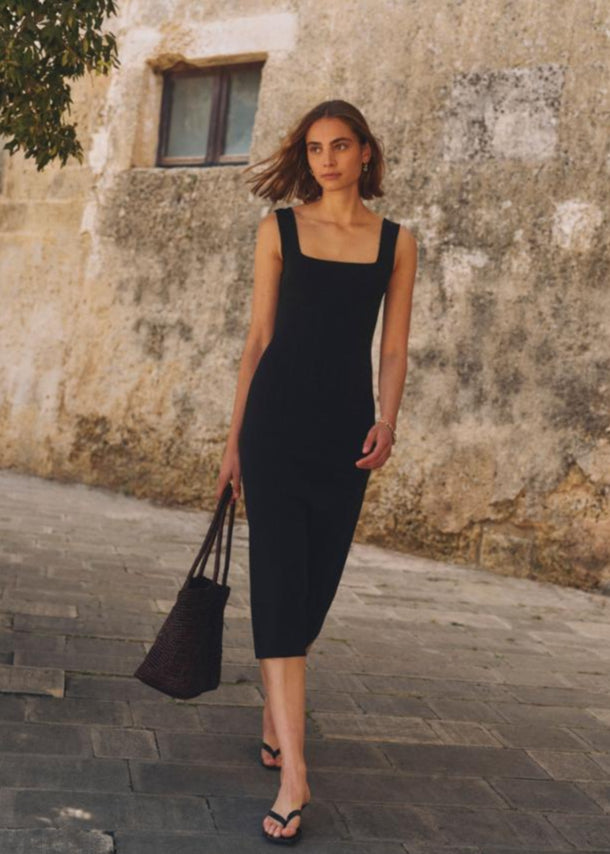 White and WarrenThe Paperfine Midi Dress is a classic that can be dressed up or down. Its easy silhouette is crafted from a resilient paperfine yarn. Sleeveless with a square neckline and subtle boning treatment at the waist, it has a flattering shape that moves with you.