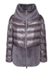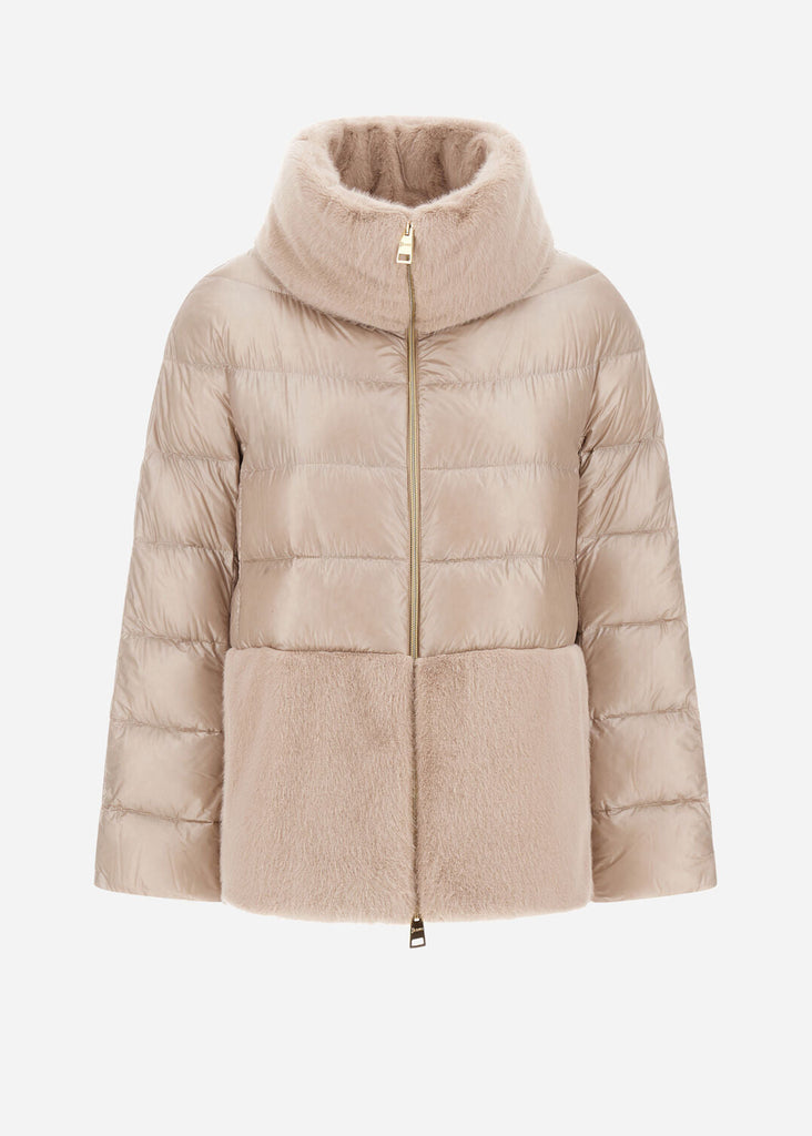 The garment is enhanced by a collar and bottom part in beaver faux fur.