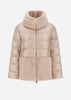 HernoCape in iconic ultralight nylon, which embodies what Herno is really all about. An exclusive technology involving 20 denier Japanese nylon and exquisite 90/10 injected down padding for an even lighter feel. The resulting garment provides decent resistance to water and a particularly luxurious, silk-like feel.