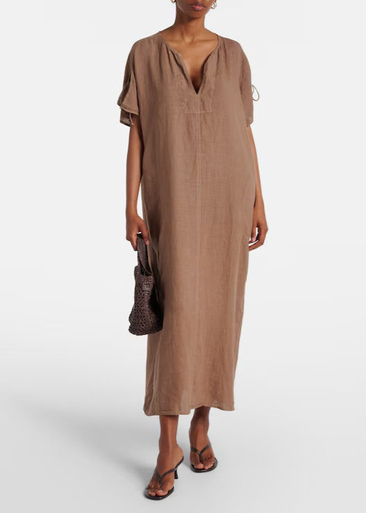 VelvetVelvet places a premium on relaxed elegance, designing daily essentials with a seasonless style, such as the Maeve kaftan. Breezy and effortless, this style is crafted from linen and features a V-neckline and ties at the sleeves.