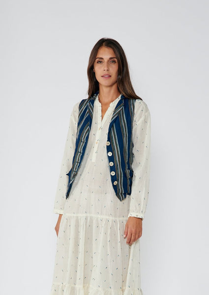 Amo Denim Ruth Crop Shirt Striped, Bone & Neptune