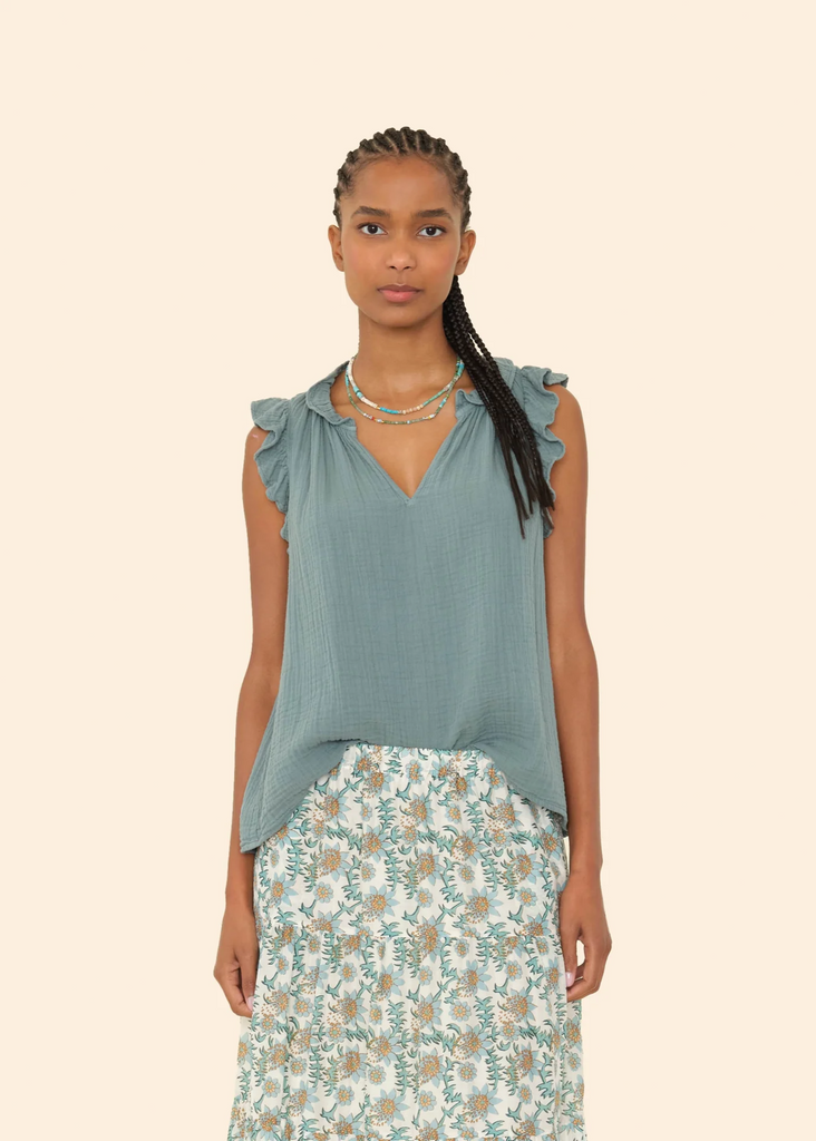 XirenaBex is made in a classic lightweight woven cotton poplin for a lived-in look and feel. This easy popover has a deep V-neck, ruffle detailing and shirring throughout.