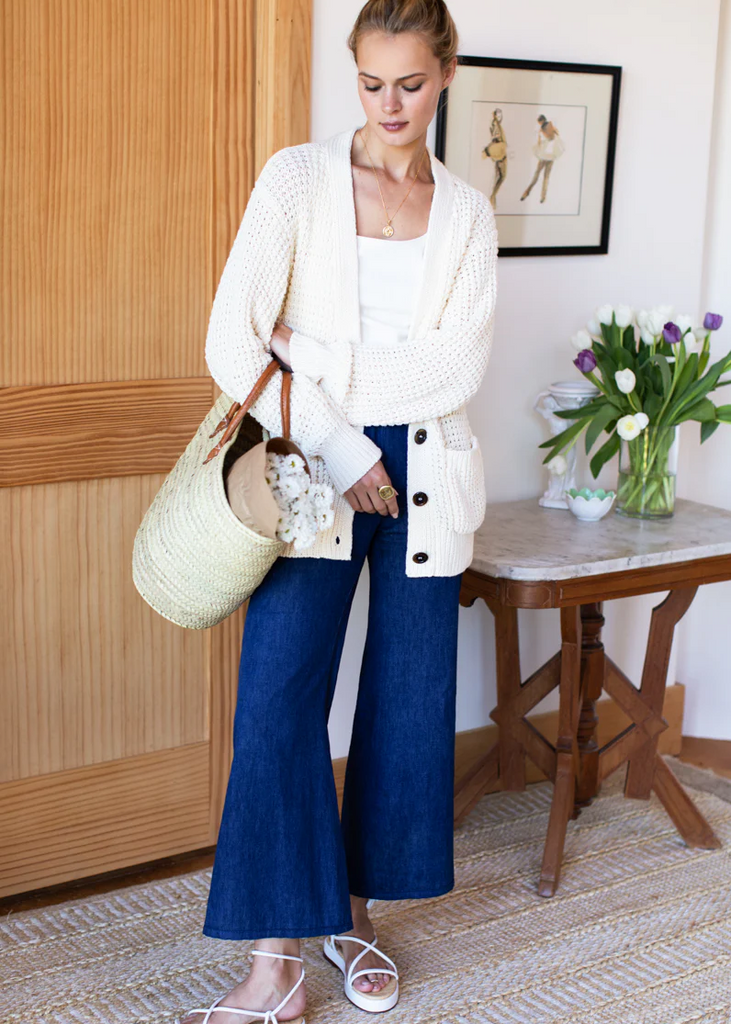 Emerson FryExperience the comfort of these super soft organic hemp pants, offering the familiar feel of your favorite jeans with enhanced ease. Designed with an elastic waistband, wide flare legs, and a cropped, neatly finished hem, they are poised to become your next indispensable wardrobe staple.