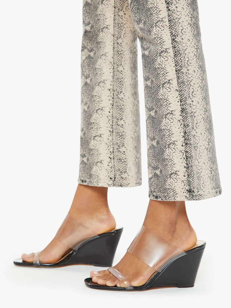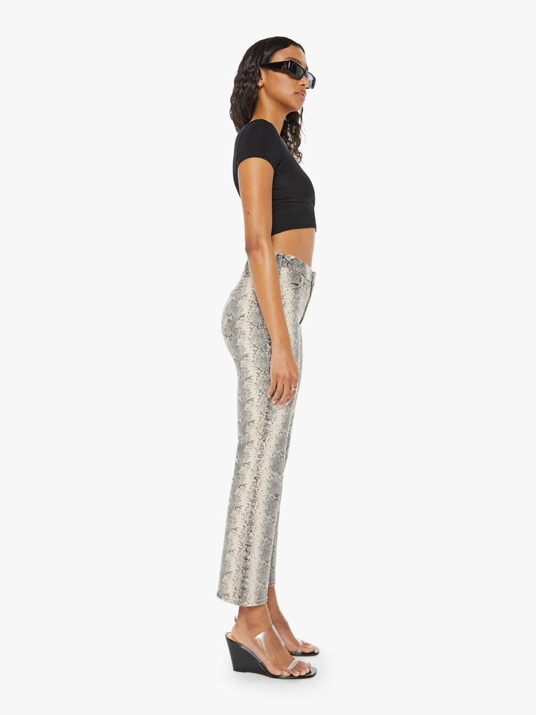 MotherFeaturing a zip fly and button closure, this five-pocket design showcases tonal stitching and hardware complemented by belt loops. The straight-leg silhouette is enhanced with an elegant snakeskin print, offering a refined yet distinctive look.